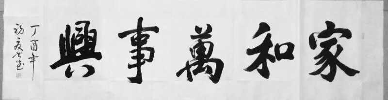 我真正喜欢上书法是小时候受到父亲的影响。因父亲喜欢书画,每逢过春节,十里八乡的人都来找父亲写春联。乡邻有儿女婚嫁办喜事也都找父亲写喜帖和喜联,乡亲们也都夸父亲的字写得好。当时年龄小只是好奇,看见父亲拿着软软的毛笔能写出优美的线条和文字,心里非常佩服。但是因各种原因,始终也没能跟父亲学习书法。直到三十岁后到郑州工作,在工作之余我对书法产生了浓厚的兴趣,开始购书买帖,读帖临帖,如痴如醉,乐在其中。