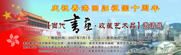“庆祝香港回归祖国十周年当代书画艺术邀请展”七月一日上午十时在南京静海寺纪念馆(原《南京条约》史料馆)举行,南京静海画院欢迎社会各界朋友光临参观。