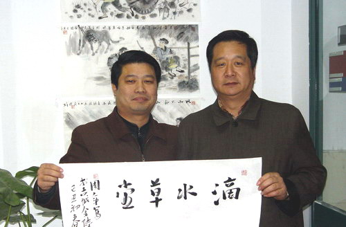 著名水墨人物画家周年先生为滴水草堂书画网题词